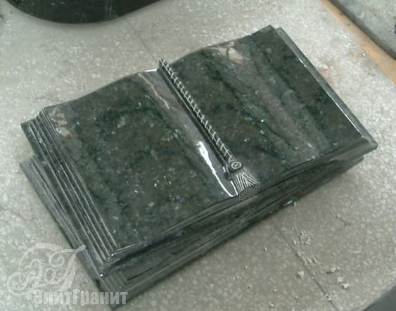 Гранитная книга может быть как основным памятником, так и дополнение к нему. Компания “ЭлитГранит” создает книги из гранита любого размера, начиная от 30х40, 40х50, 50х60 и далее.