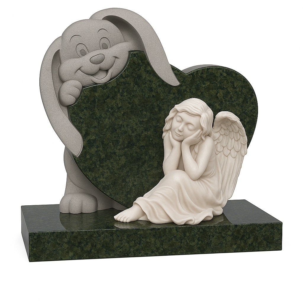 Памятник для ребёнка может быть выполнен из различных пород гранита, мрамора, габбро. В качестве оформления могут быть использованы бронзовые буквы и декор Caggiati (Италия) либо гравировка.