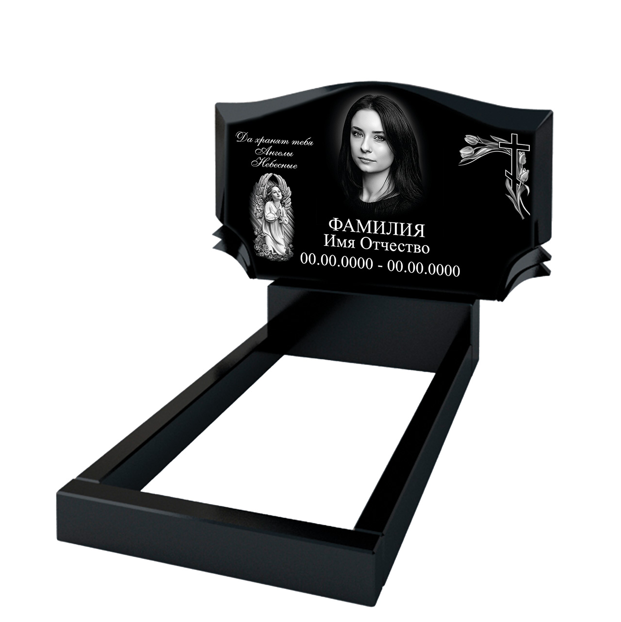 Памятник из габбро-диабаза с горизонтальной стелой — семейный комплект