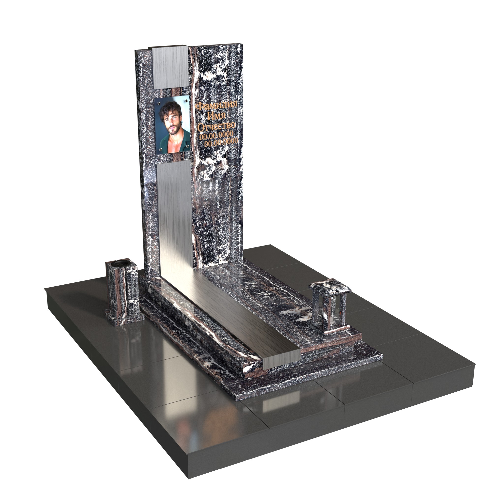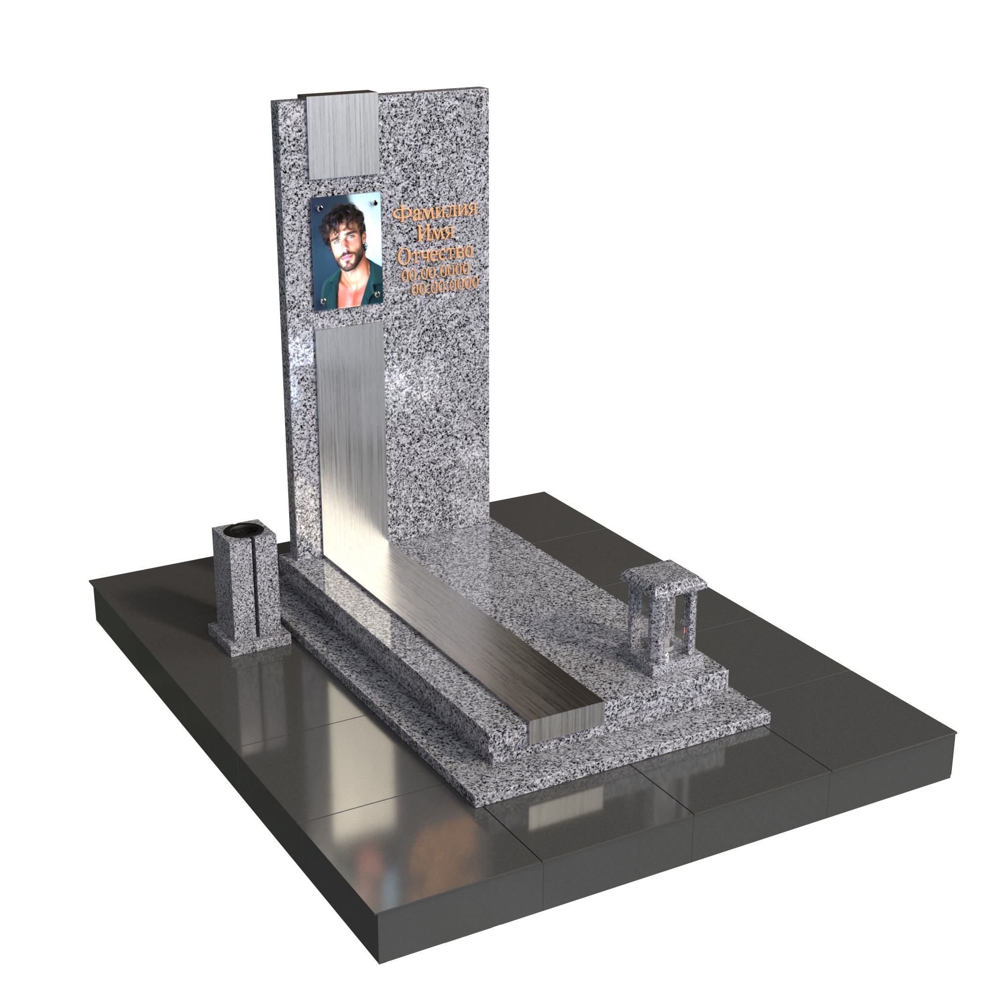 Памятник «Отражение времени» — это современное и лаконичное решение для тех, кто ценит чёткие линии, силу формы и философский смысл. Центральная стела с вертикальной металлической вставкой символизирует зеркало памяти, в котором навсегда остался облик ушедшего.
