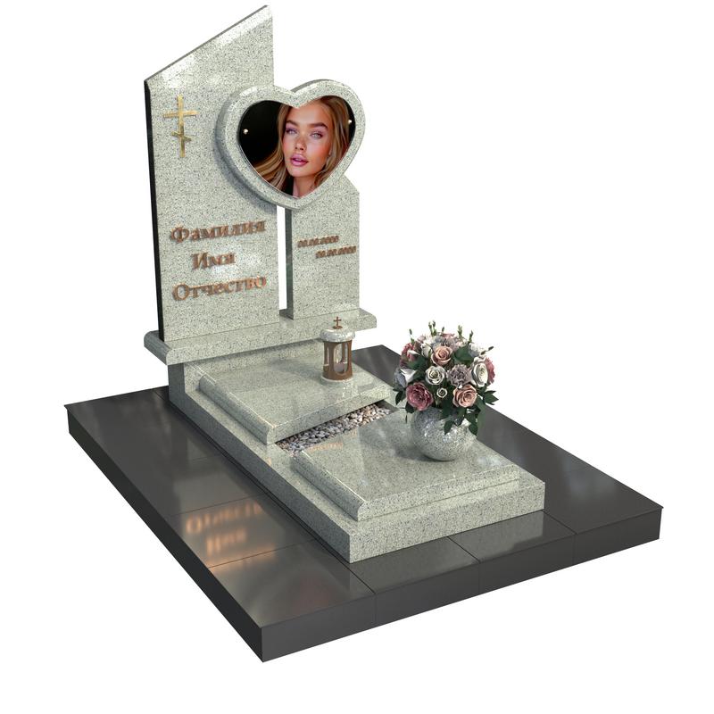 Памятник «Свет любви» — это утончённая и символичная модель, выполненная из светлого гранита Мансур. Лаконичный силуэт стелы с чёткими линиями и сердцем, в которое вписан фотопортрет, выражает идею бесконечной любви и душевной теплоты, которая остаётся с близкими даже после ухода.
