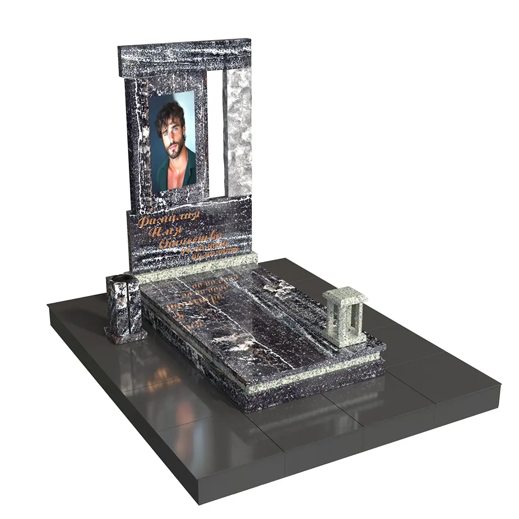 Памятник «Открытие вечности» — это современная архитектурная модель, в которой каждая деталь несёт глубокий символизм. Геометричная форма с прямыми линиями и открытой нишей словно создаёт портал, через который душа переходит в иное измерение. Контрастный камень с выразительной текстурой придаёт композиции глубину и силу, подчеркивая уникальность личности ушедшего.